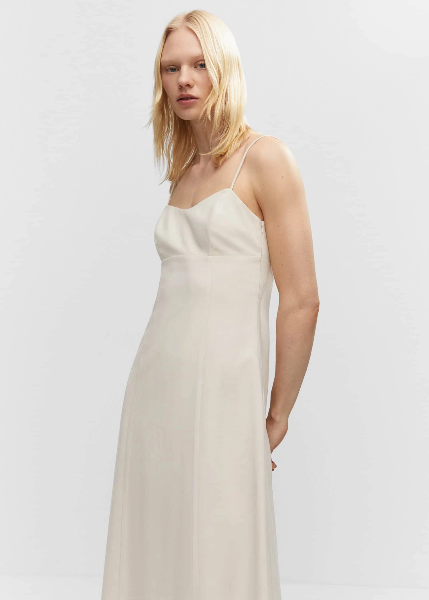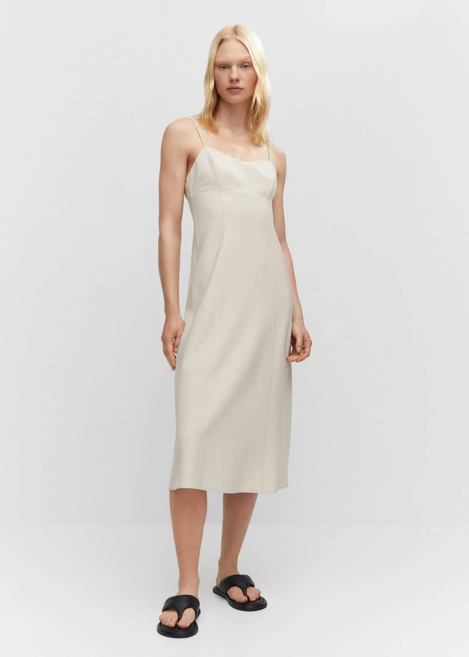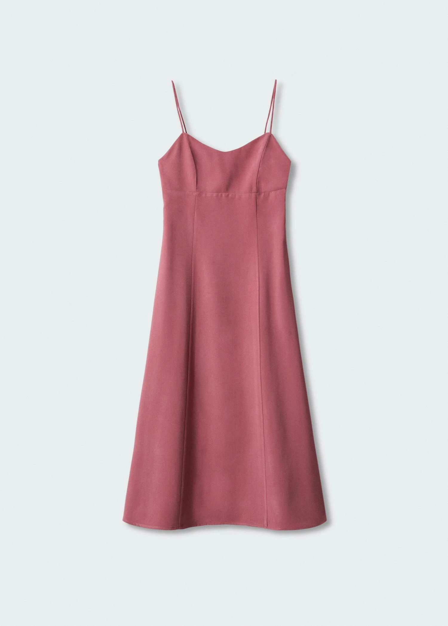 tissu fluide, coupe droite, coupe midi, encolure en cœur, bretelles fines, dos nu, fermeture eclair lateraleComposition: 93% viscose,7% polyester. Doublure: 100% viscose