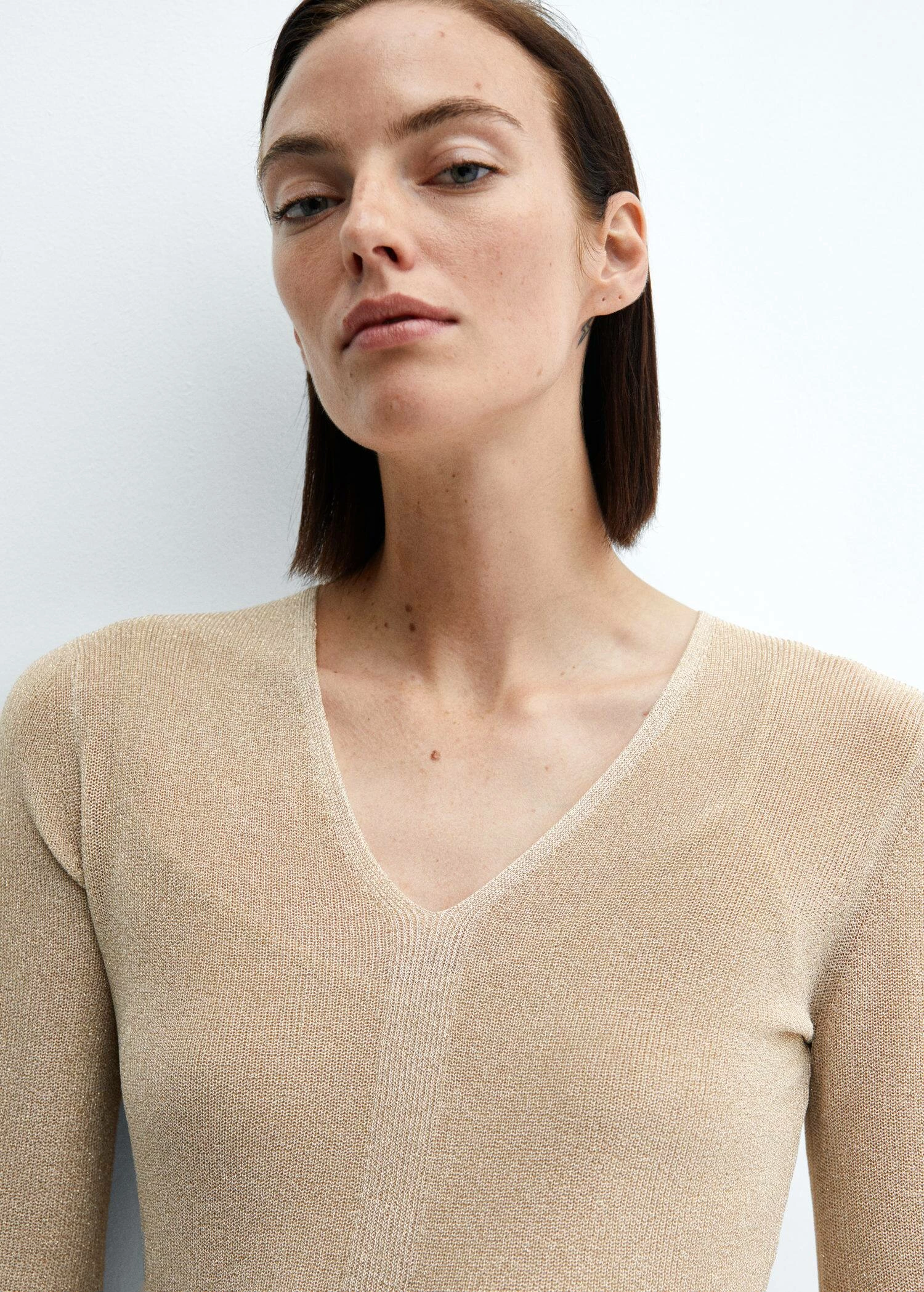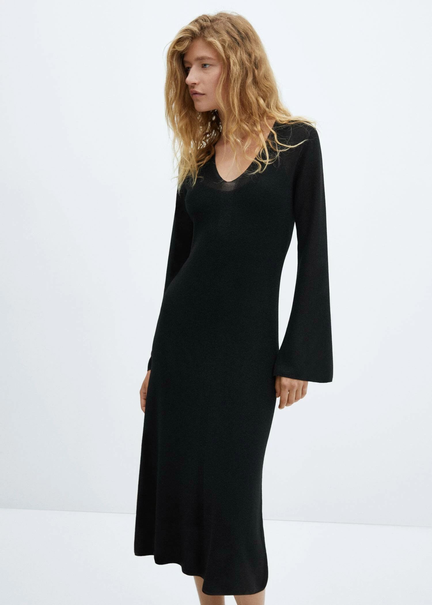 tissu en fil metallise melange, coupe midi, coupe droite, col en v, manches longues cloche, sans fermeture, doublure, total lookComposition: 82% polyester,18% polyester avec revêtement de cuivre. Doublure: 100% polyester