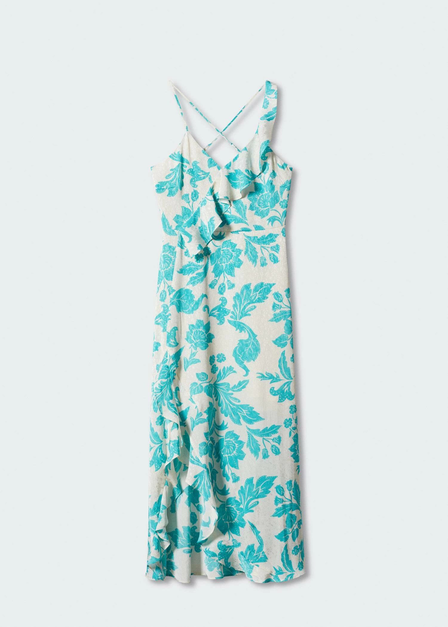 tissu jacquard, croise, coupe midi, motif floral, col en v, bretelles fines ajustables, bretelles croisees dans le dos, fermeture laterale a nœuds, detail volante, disponible plusComposition: 100% polyester. Doublure: 100% polyester