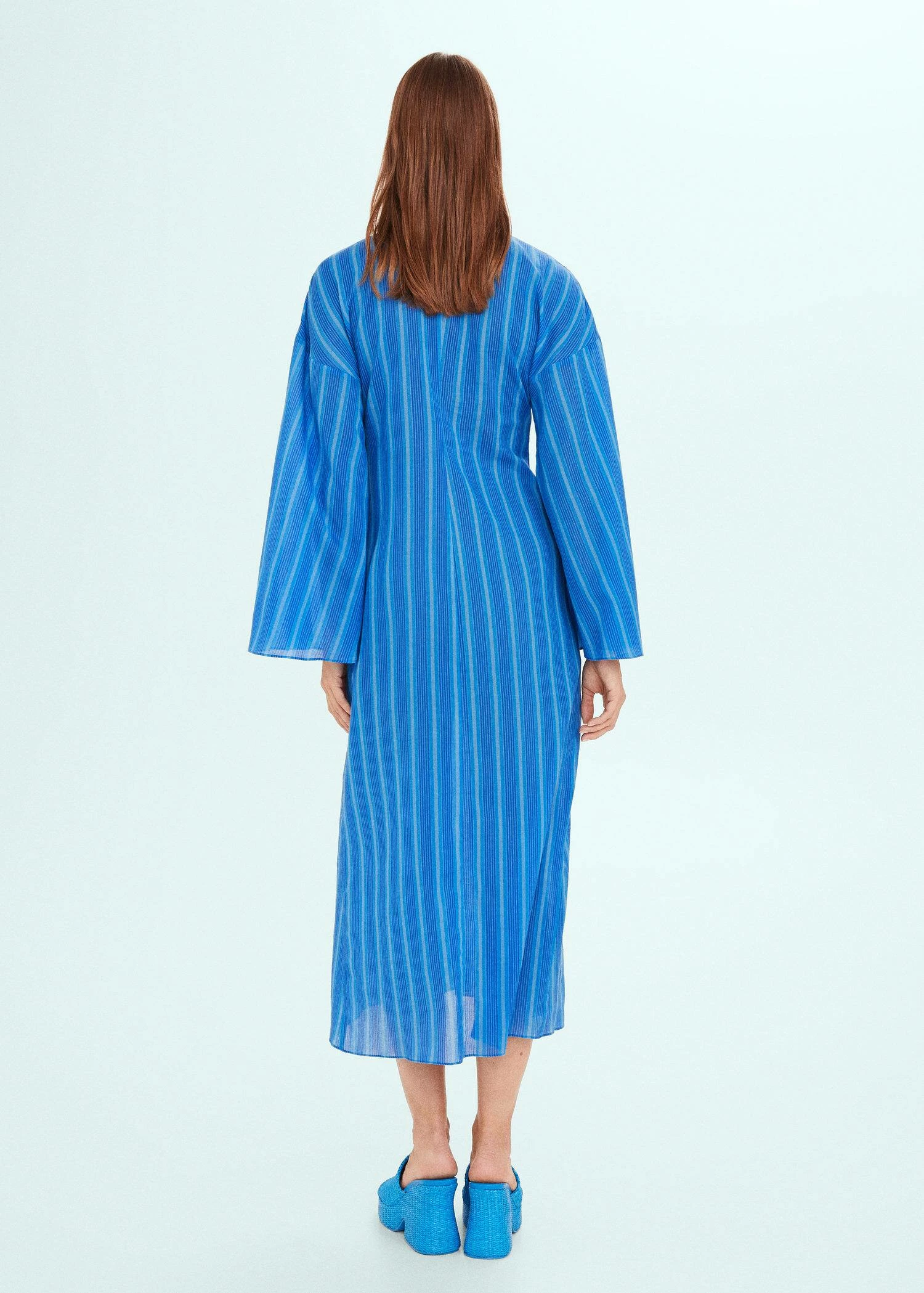 tissu 100 % coton, coupe droite, coupe longue, motif raye, col en v, manches longues cloche, sans fermeture, detail nœud, simonmiller mango : nous nous sommes associes a la marque de los angeles pour vous proposer une collection d’ete rafraichissante qui mele le meilleur des styles californien et mediterraneen. avec des tissus de qualite et des imprimes vibrants, les vetements de cette collaboration speciale debarquent dans votre dressing pour devenir vos favoris de l’ete.Composition: 100% coton