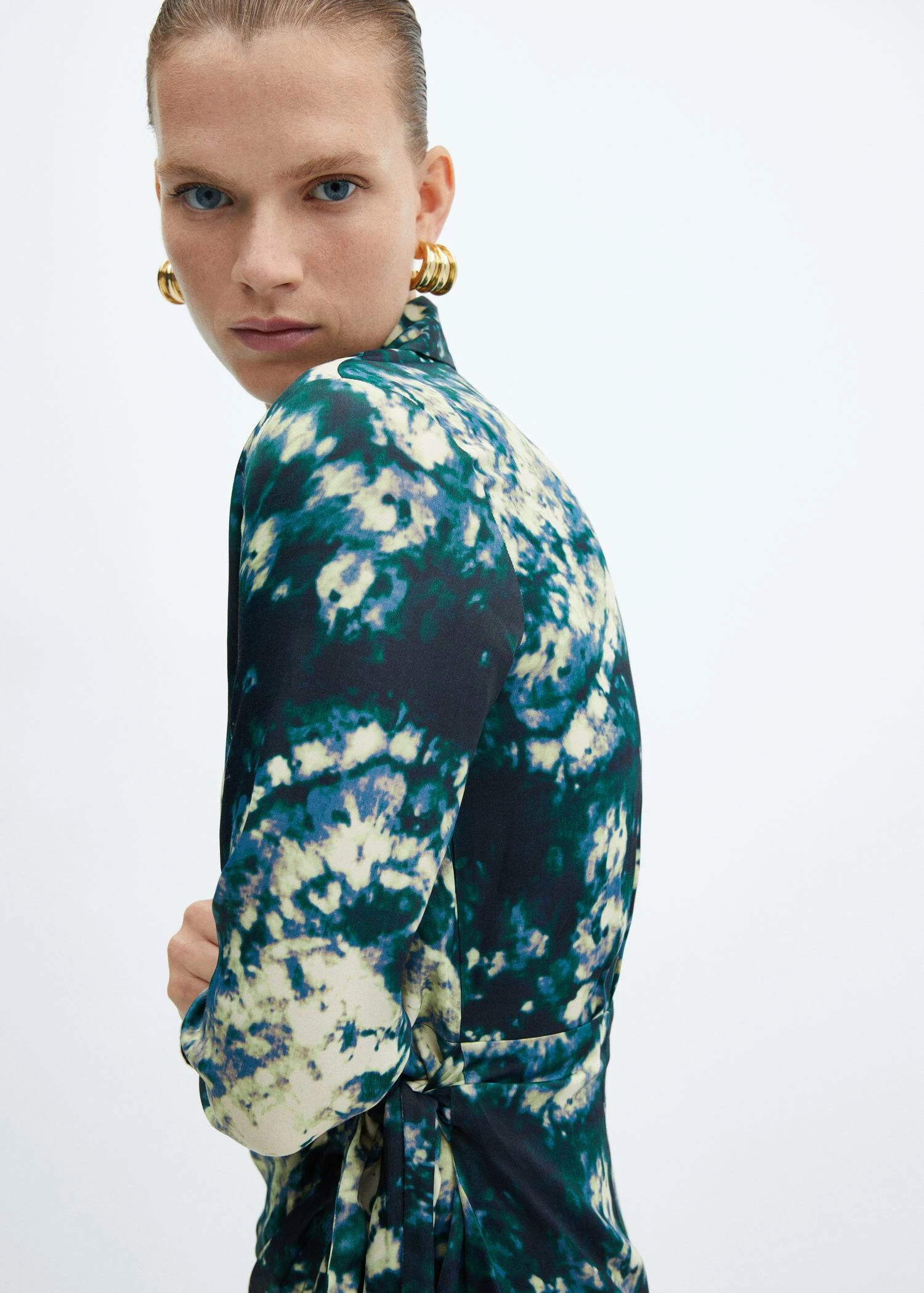 tissu fluide, coupe courte, imprime, croise, imprime tie-dye, col chemise en v, manches longues, ruban a la taille avec fermeture a nœud, disponible plus, looks de bureauComposition: 100% viscose