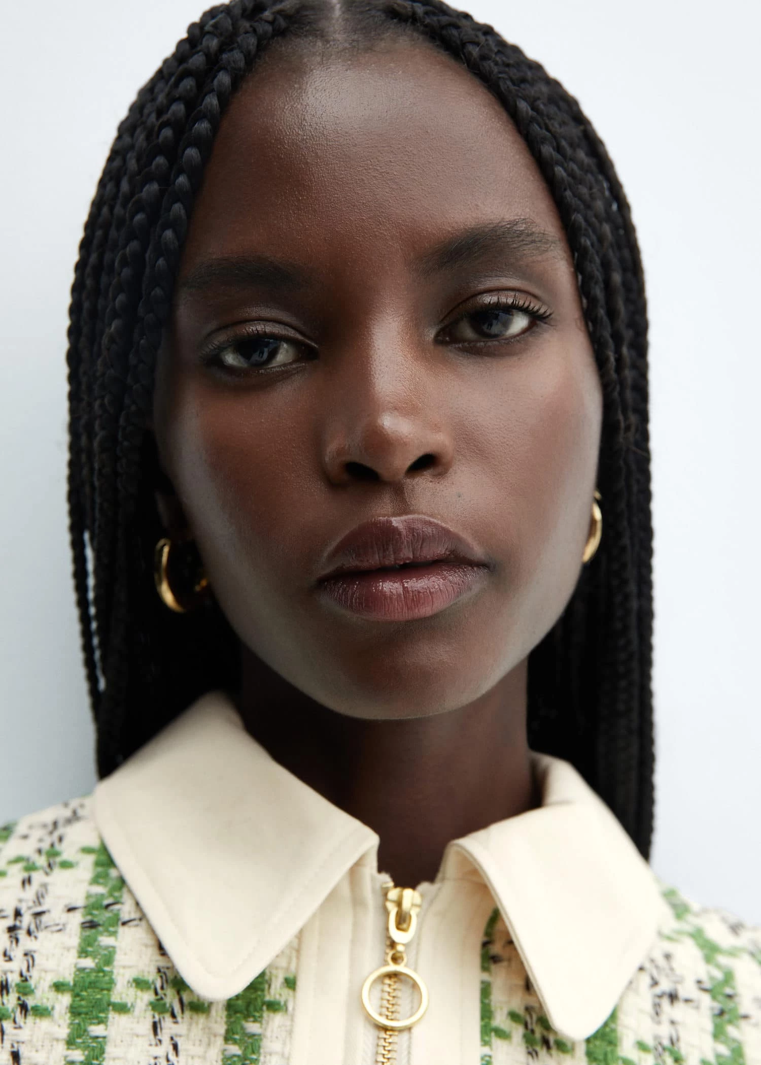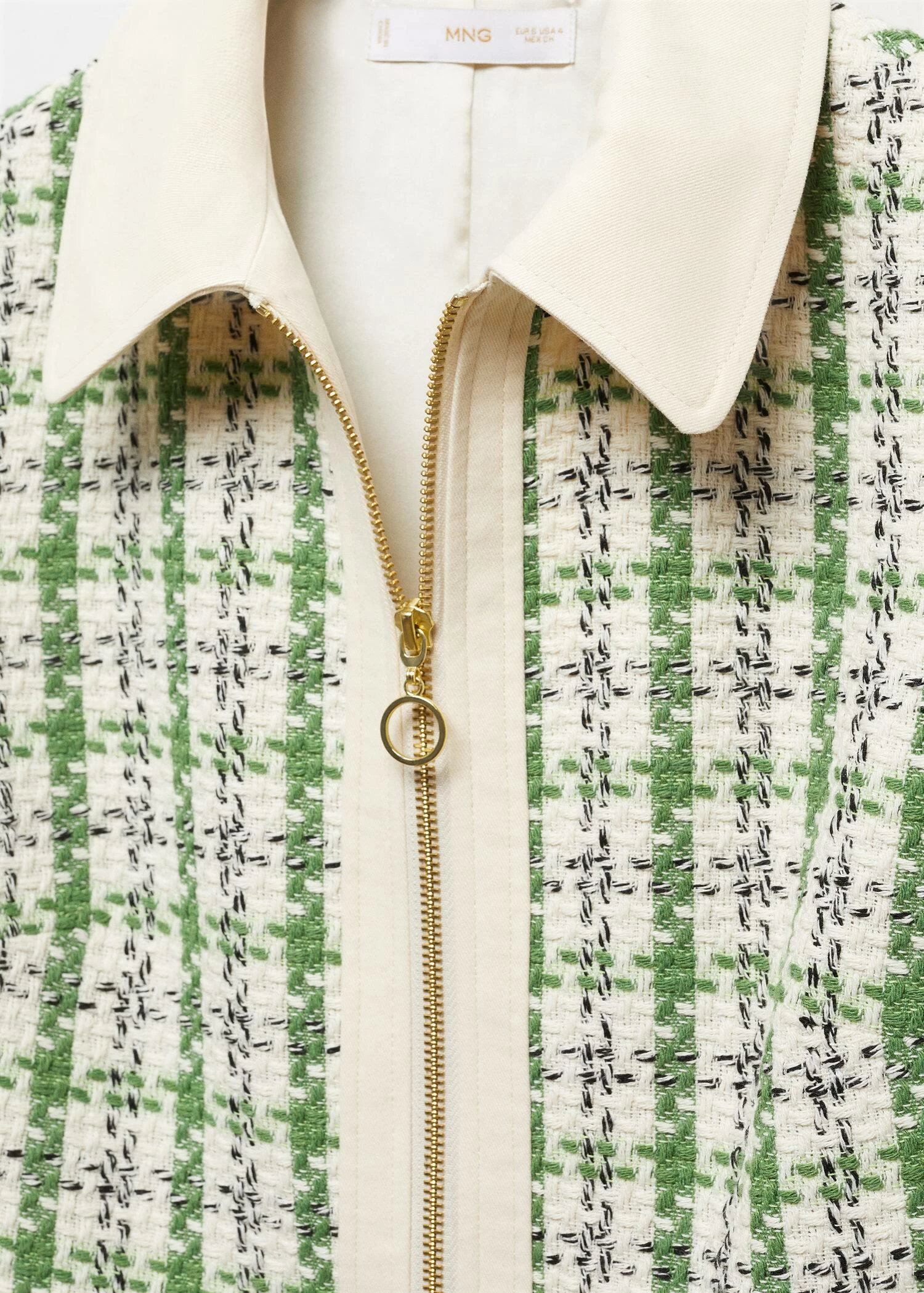 tissu tweed, coupe courte, col chemise, manches courtes, deux poches plaquees sur le devant, fermeture eclair a l’avant, doublure, total lookComposition: 76% polyester,15% acrylique,7% polyamide,2% coton. Doublure: 100% polyester