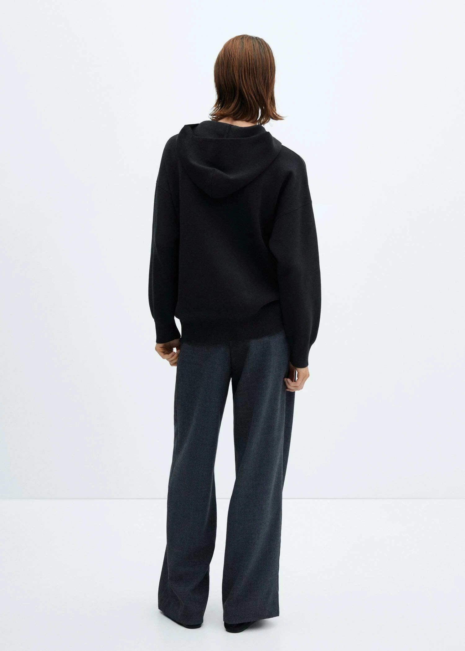 tissu en maille fine, coupe droite, capuche, manches longues, poche plaquee sur le devant, bords cotelesComposition: 58% polyamide,42% viscose