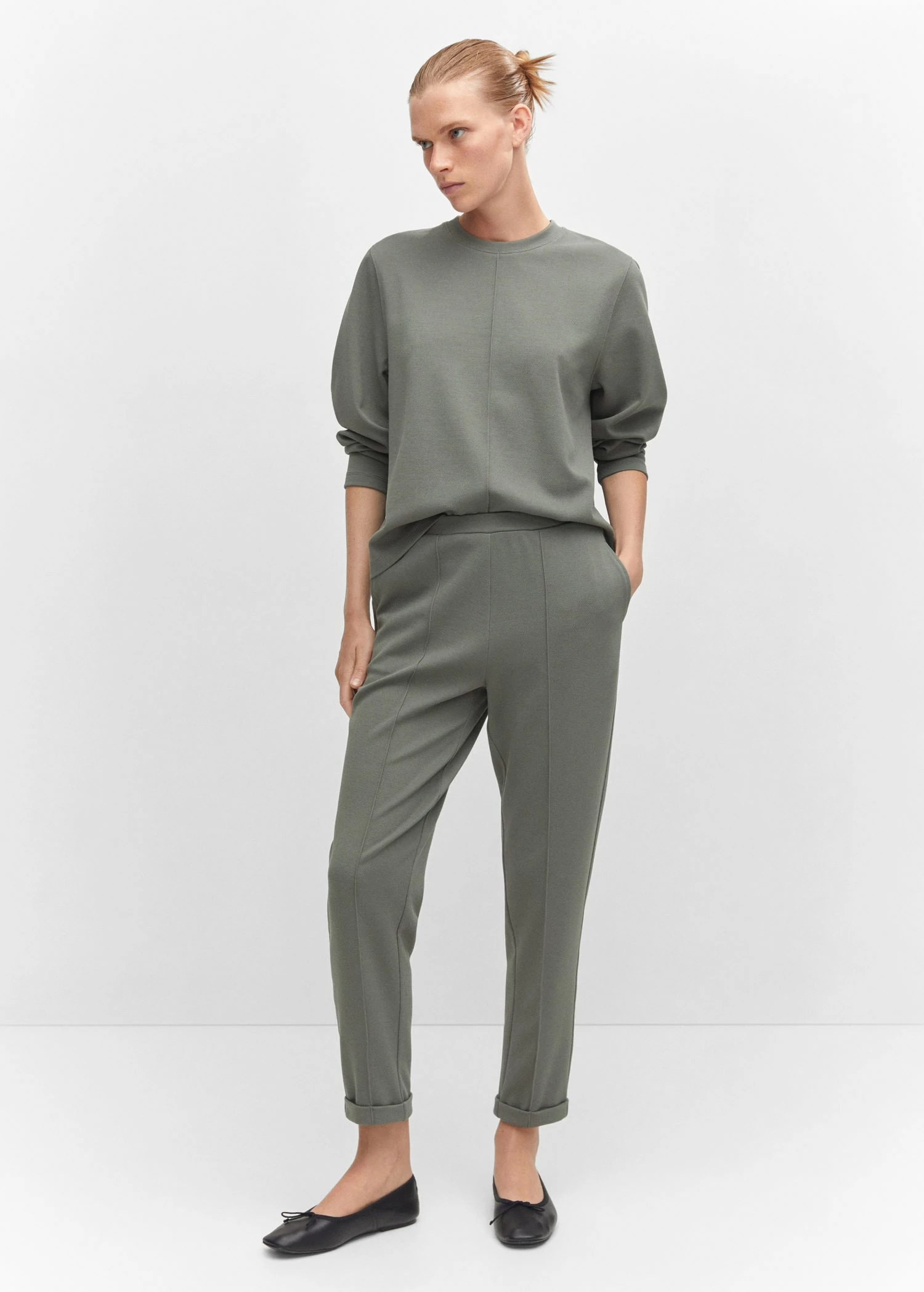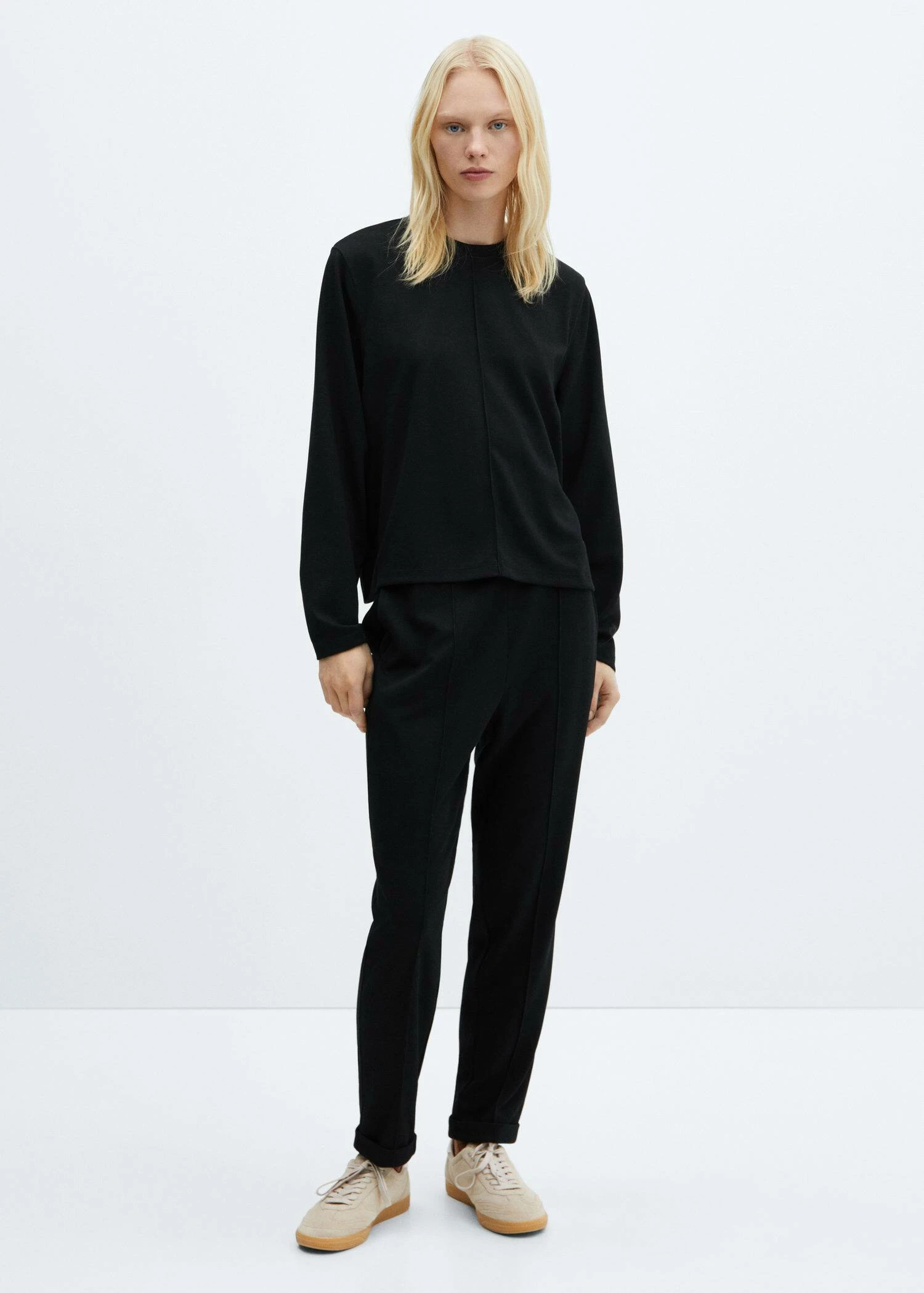 tissu fluide, droit, col rond, manches longues, coutures decoratives, sans fermeture, total lookComposition: 78% polyester,20% viscose,2% elasthanne
