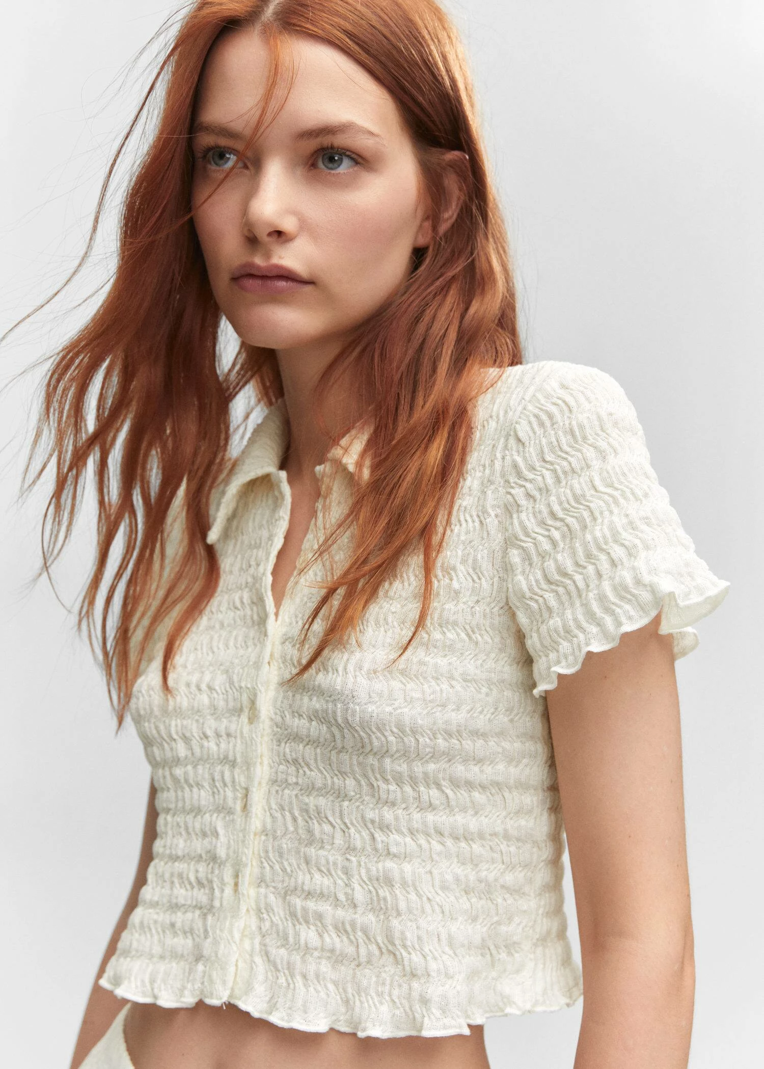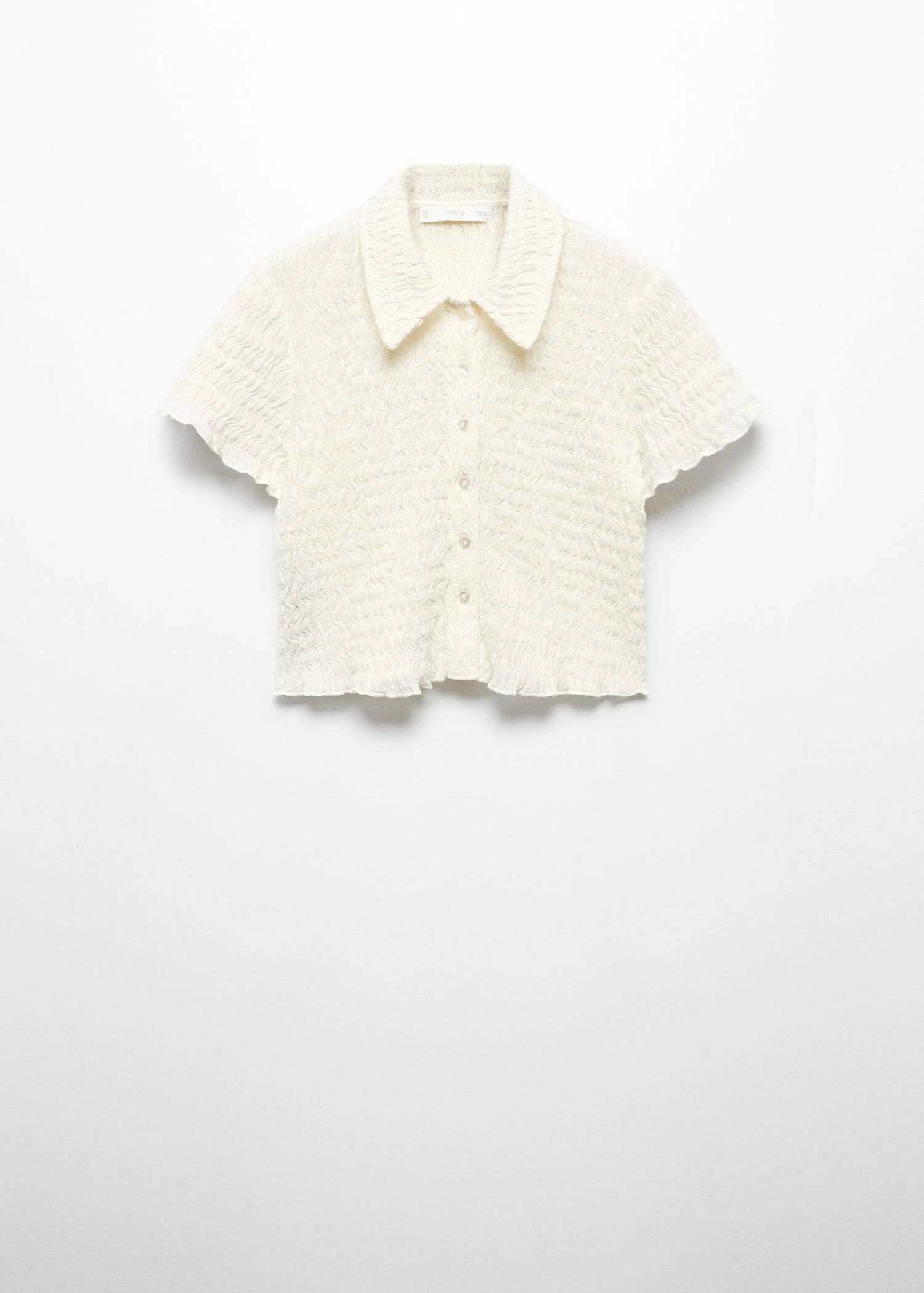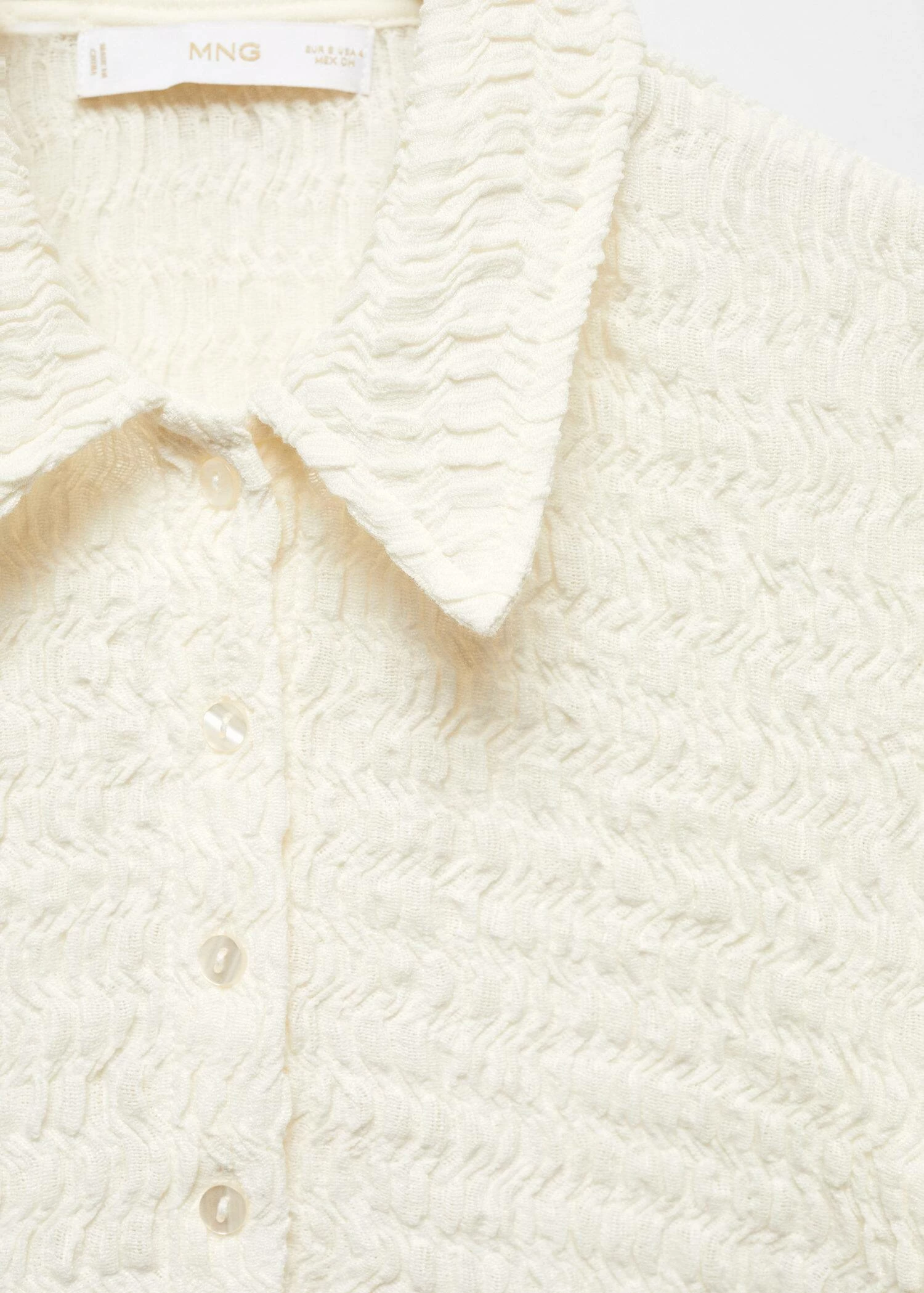 tissu de coton melange, tissu texture, coupe droite, style crop, col chemise, manches courtes, fermeture boutonnee sur le devant, total lookComposition: 64% coton,35% polyester,1% elasthanne