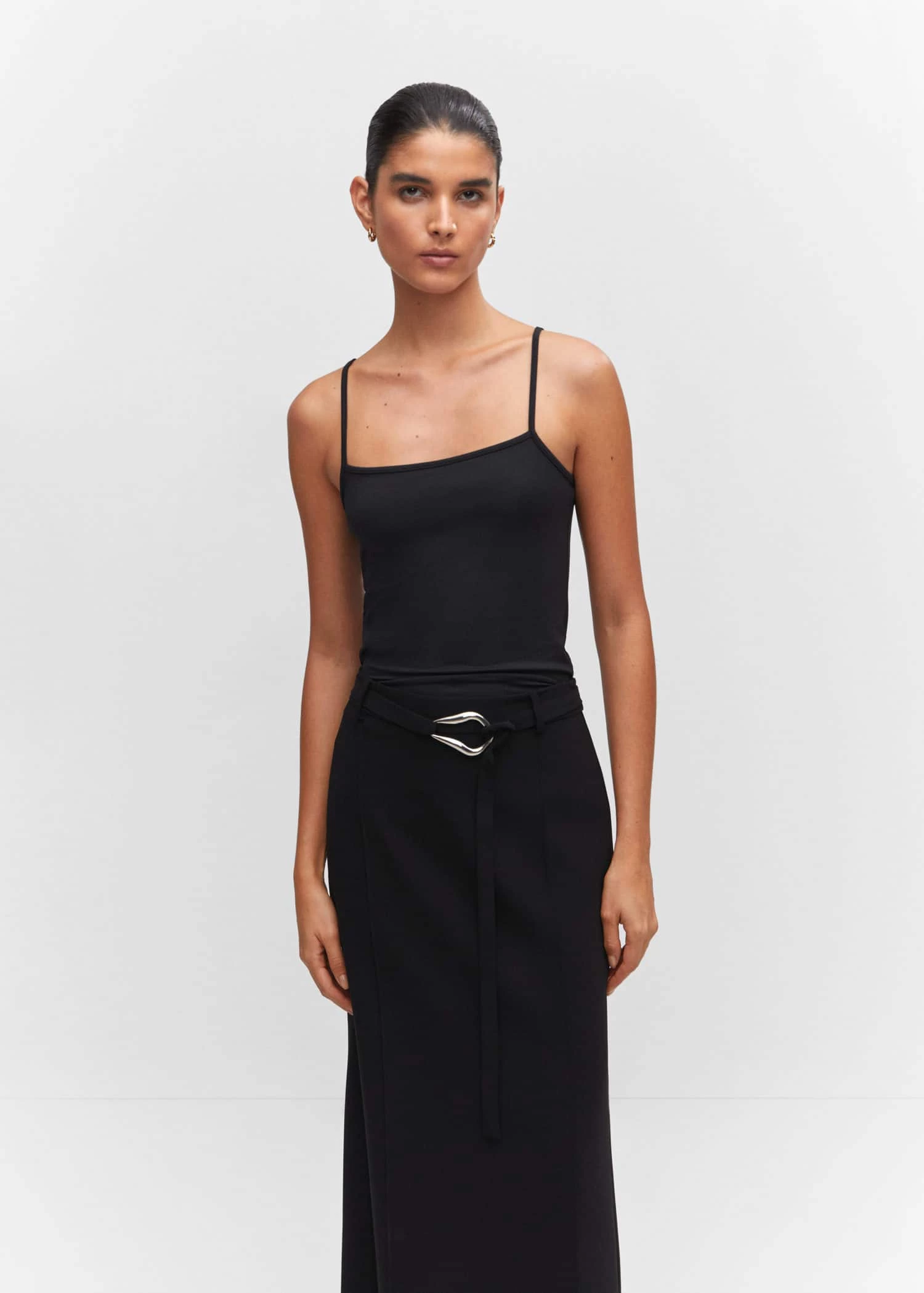 tissu fluide, coupe cintree, col droit, bretelles fines, sans fermetureComposition: 90% polyamide,10% elasthanne