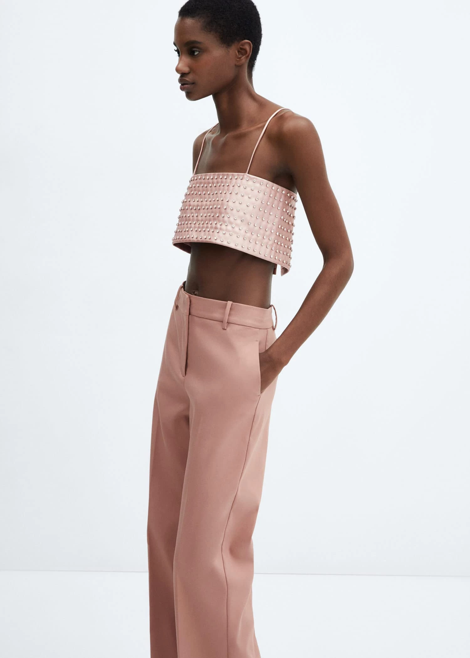 similicuir, style crop, finition metallisee, col droit, sans manches, bretelles fines, fermeture crochet a l’arriere, cristaux a facettes, ouverture au dos, doublure, total look, collection fetes et ceremoniesComposition: 100% polyester. Doublure: 100% polyester. Ornement: 100% verre. Revêtement: 100% polyurethane