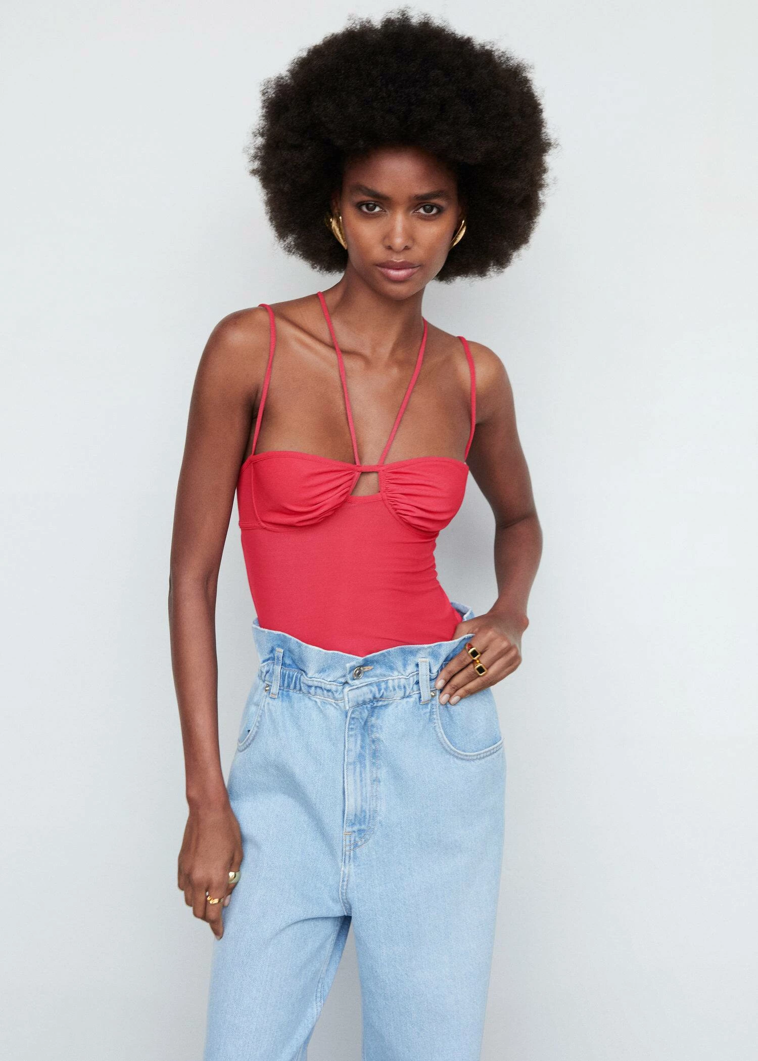 tissu fluide, ajuste, style corset, col echancre, bretelles fines doubles, encolure au dos, fermeture a crochets a l’arriere, saison des festivalsComposition: 88% polyester,12% elasthanne. Doublure: 95% polyester,5% elasthanne