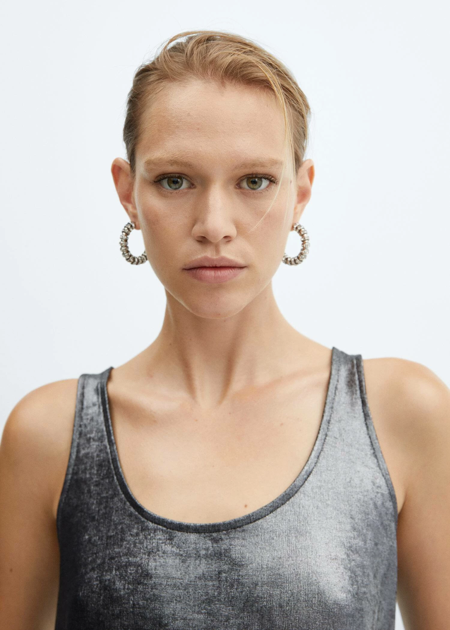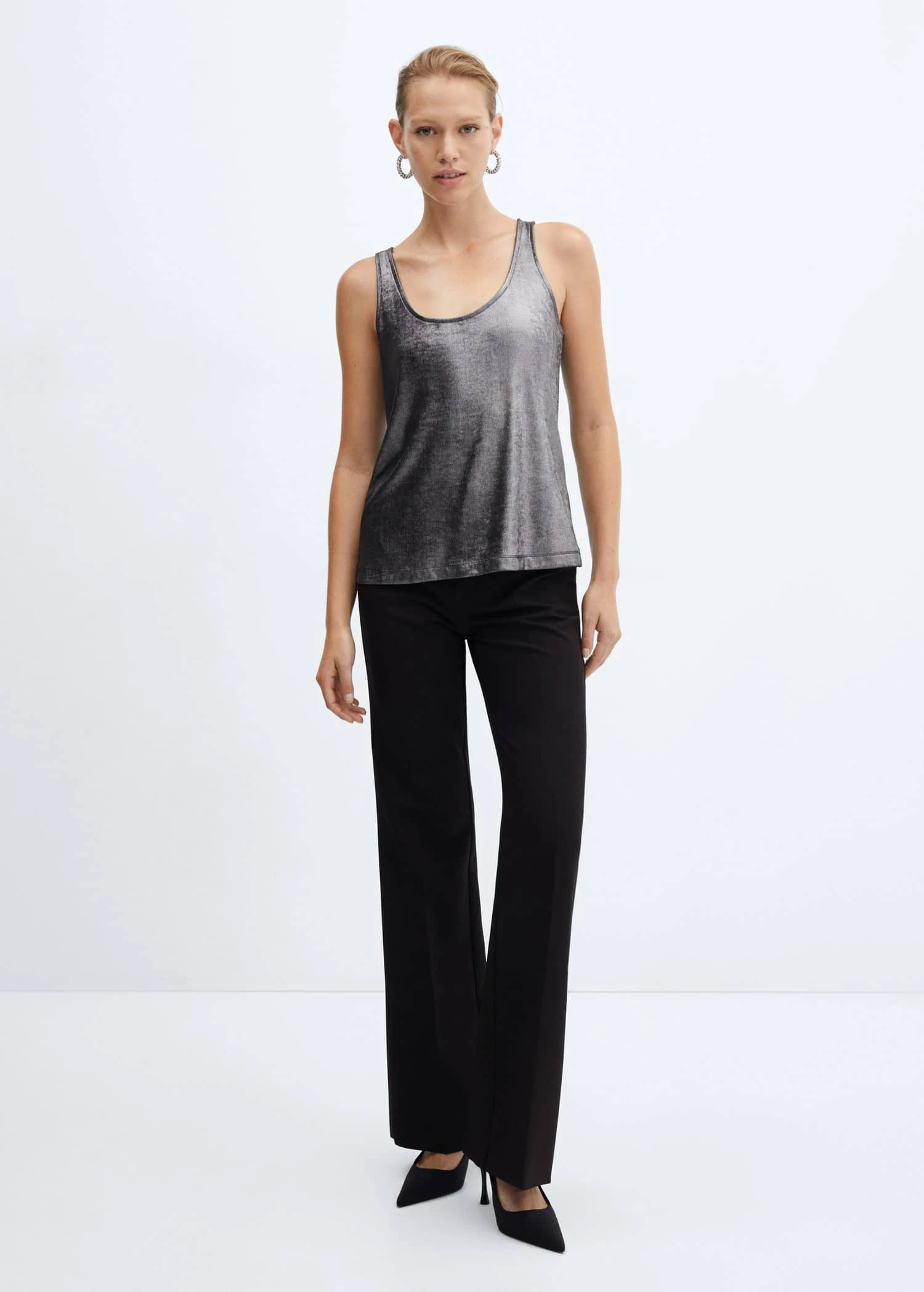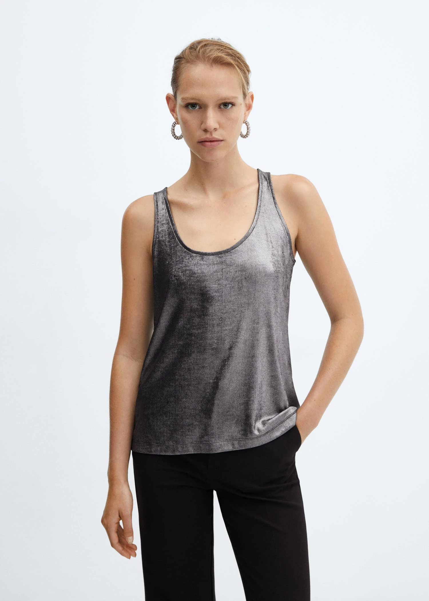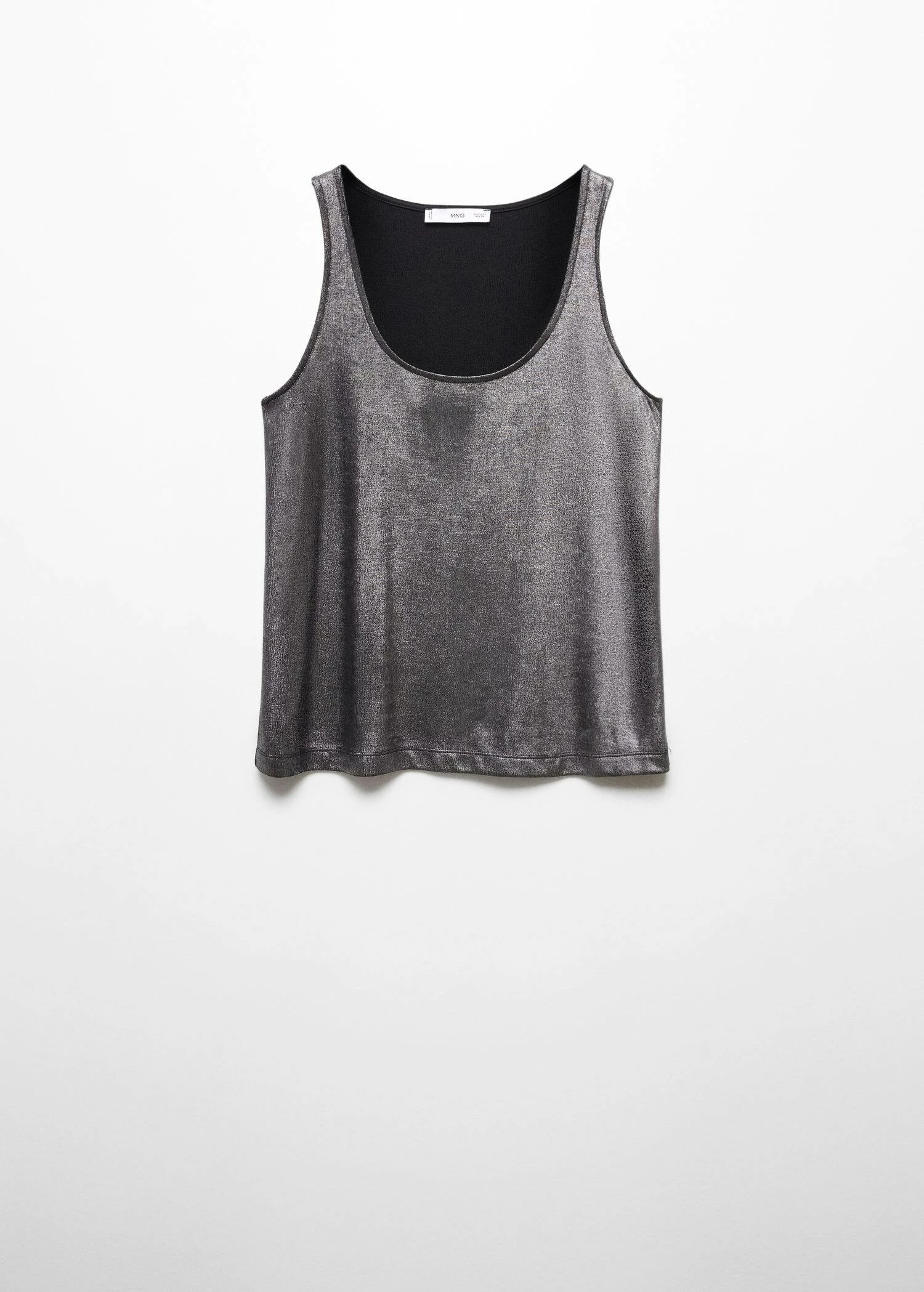 tissu fluide, coupe droite, finition metallisee, col echancre, sans manches, bretelles largesComposition: 95% polyester,5% elasthanne