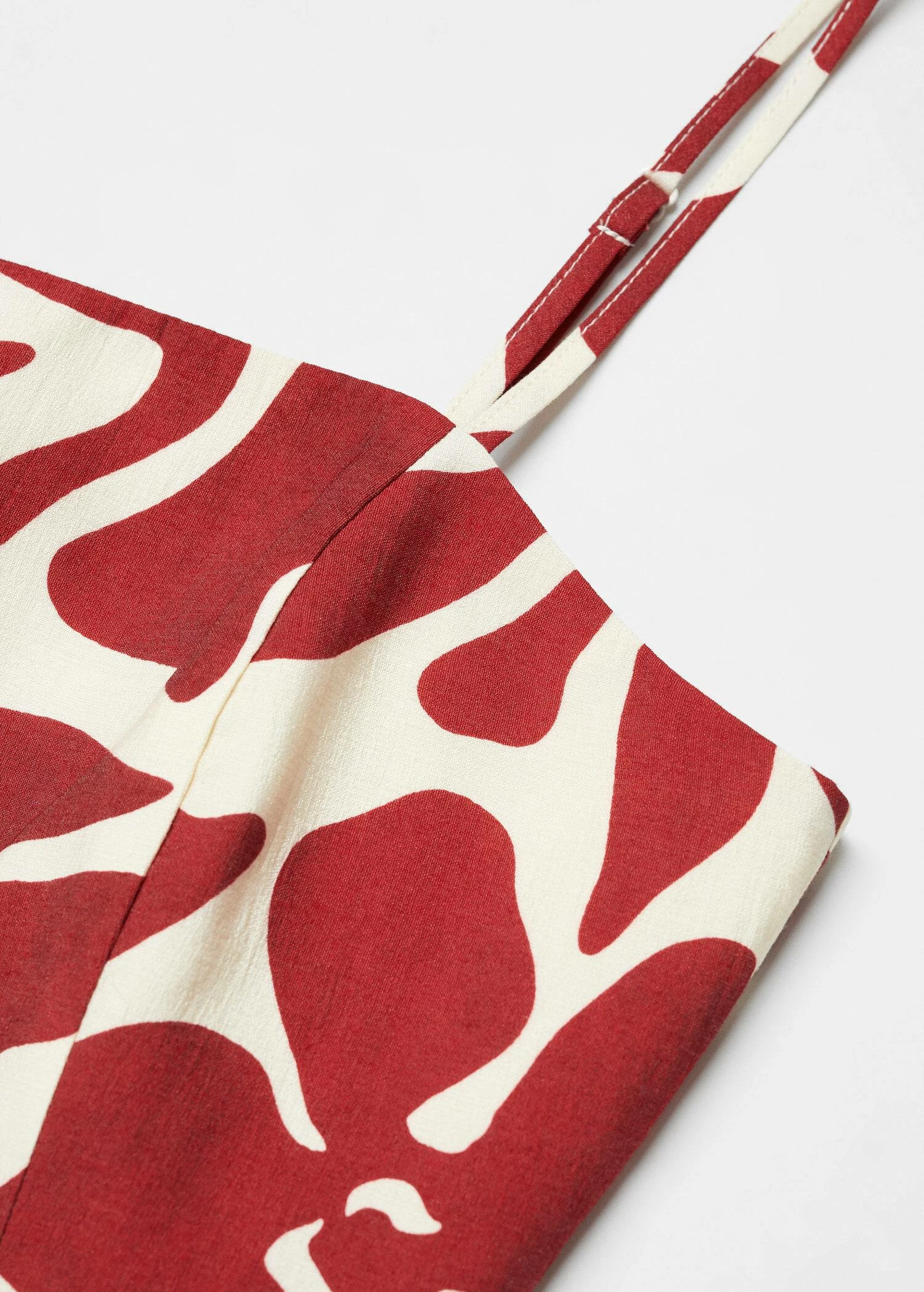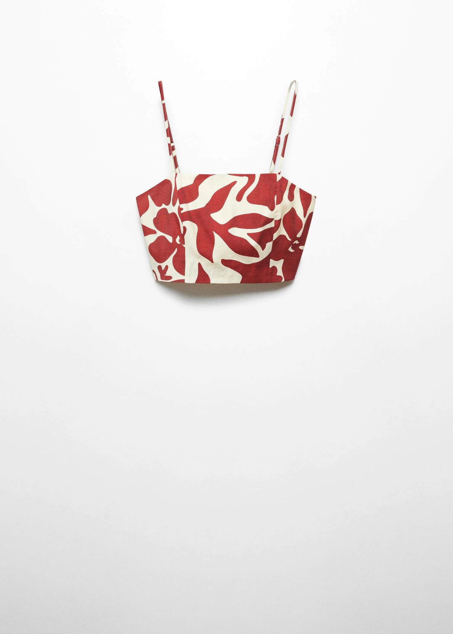 tissu fluide, style crop, imprime floral, col droit, bretelles fines, sans manches, elastique a la taille apparent dans le dos, doublure, total lookComposition: 86% viscose,11% polyester,3% polyamide. Doublure: 80% polyester,20% coton