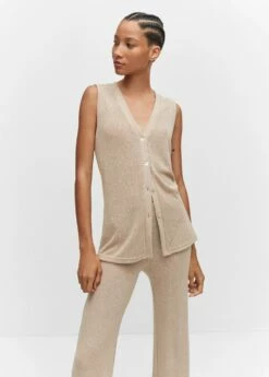 tissu en maille, coupe longue, coupe droite, col en v, sans manches, fermeture boutonnee sur le devant, total look, disponible plusComposition: 58% viscose,42% polyester