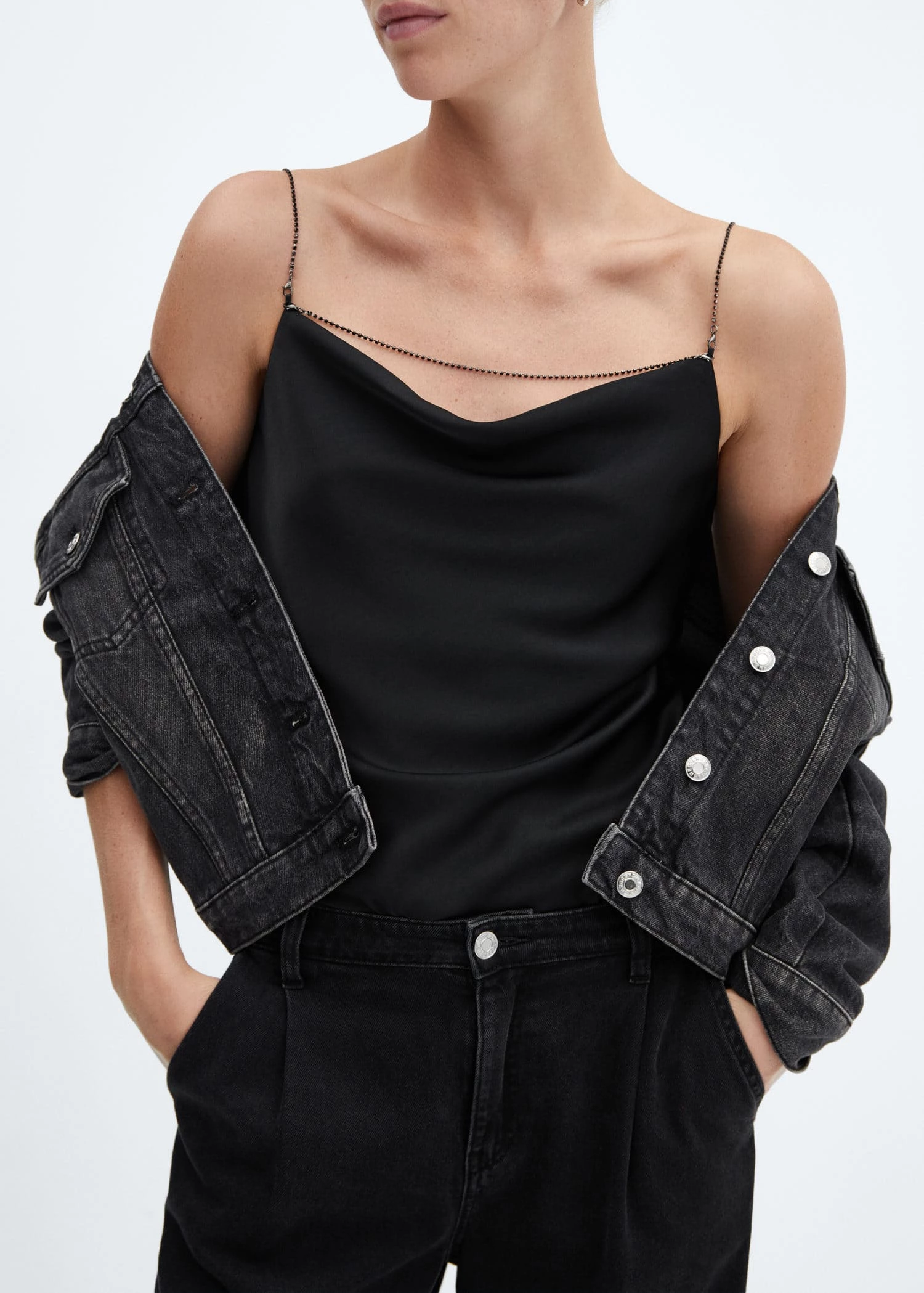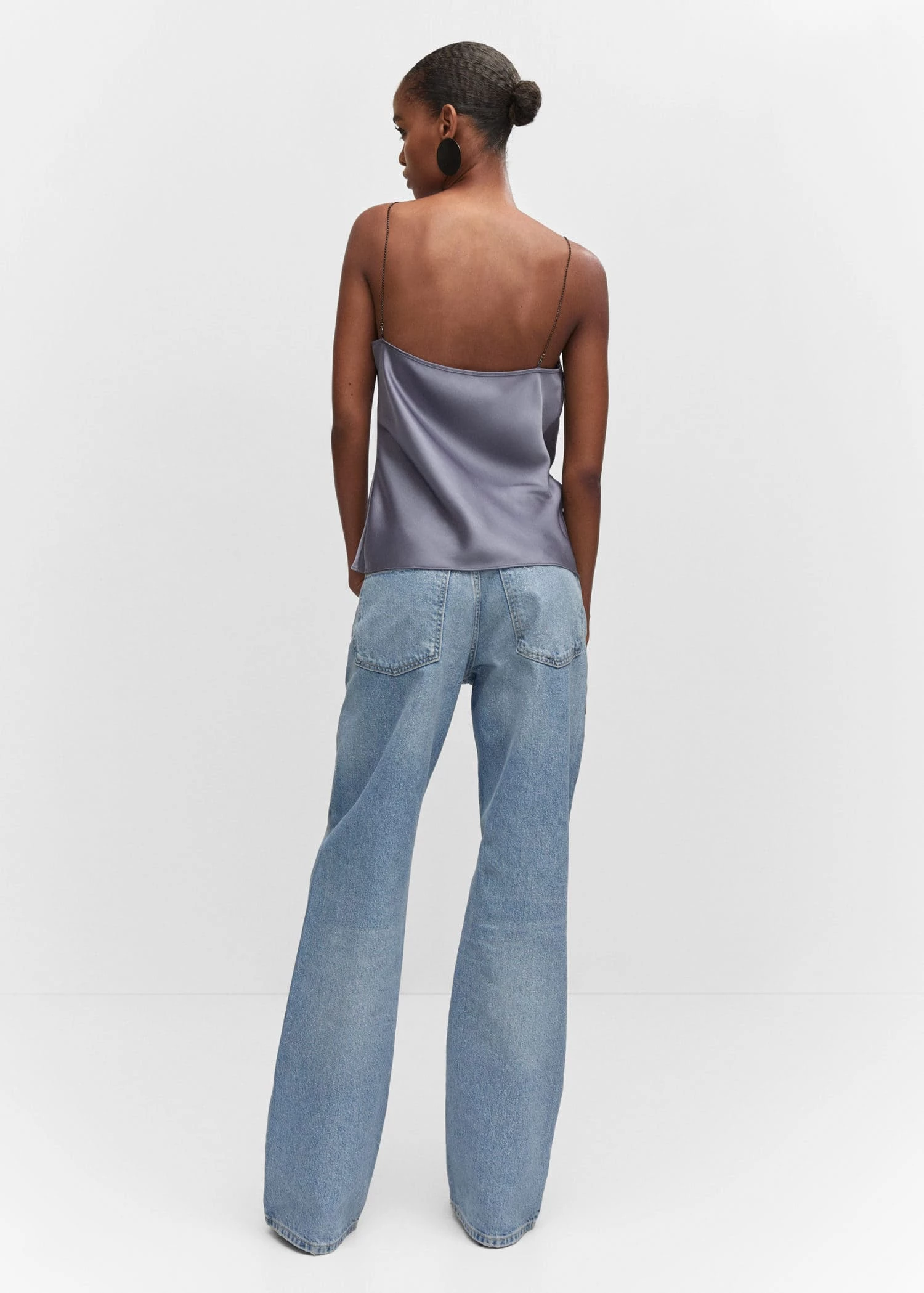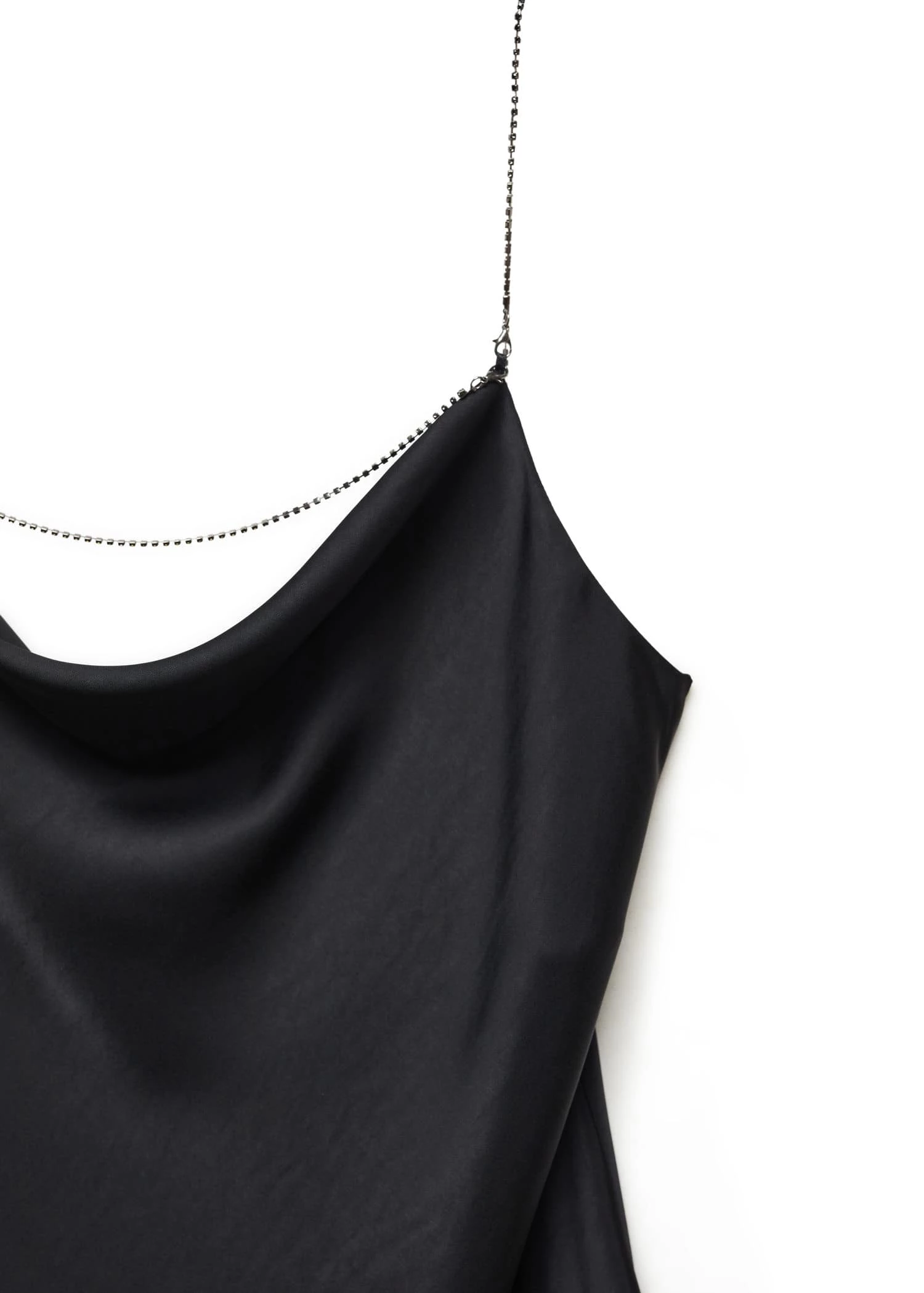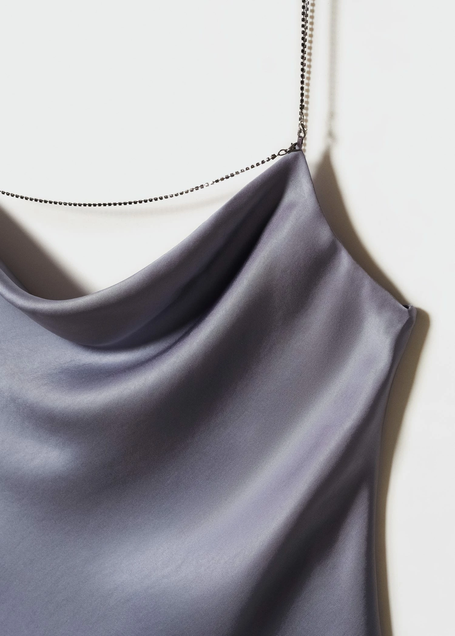 tissu satine, tissu fluide, coupe droite, col drape, bretelles fines, encolure au dos, sans fermetureComposition: 100% polyester. Bretelles: 45% cuivre,40% verre,15% zinc
