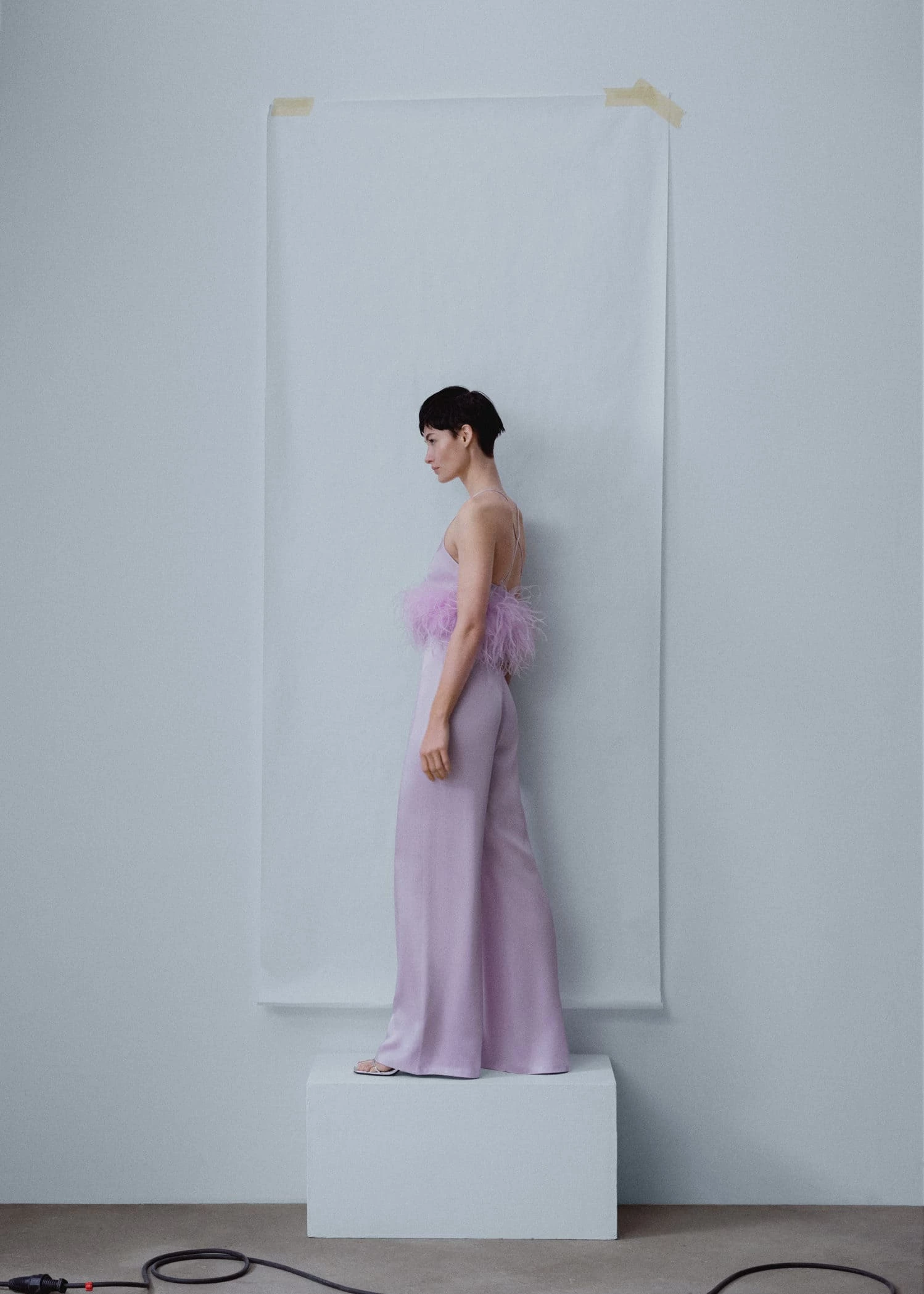 ce haut de couleur pastel a plumes ajoute de la sophistication, mais egalement une touche amusante, jeune et originale. associez-le au pantalon palazzo assorti pour un total look renversant. ce vetement a ete fabrique au maroc avec des tissus italiens qui lui conferent une qualite superieure., tissu fluide avec finition satinee, style crop, detail de plumes, col en v, bretelles fines, tissus fabriques en italie, fabrique au maroc, ce vetement contient une fermeture eclair de corseterie avec fermeture speciale, short denim fleurs, collection fetes et ceremonies, capsule : une collection de vetements en edition limitee, fabriques avec les meilleurs tissus et le plus grand soin en matiere de patrons, afin d’obtenir les meilleures finitions. cette collection exclusive est concue pour les evenements et les occasions les plus chics.COMPOSITION:71% ACETATE,29% VISCOSE. LISIERE:71% ACETATE,29% VISCOSE