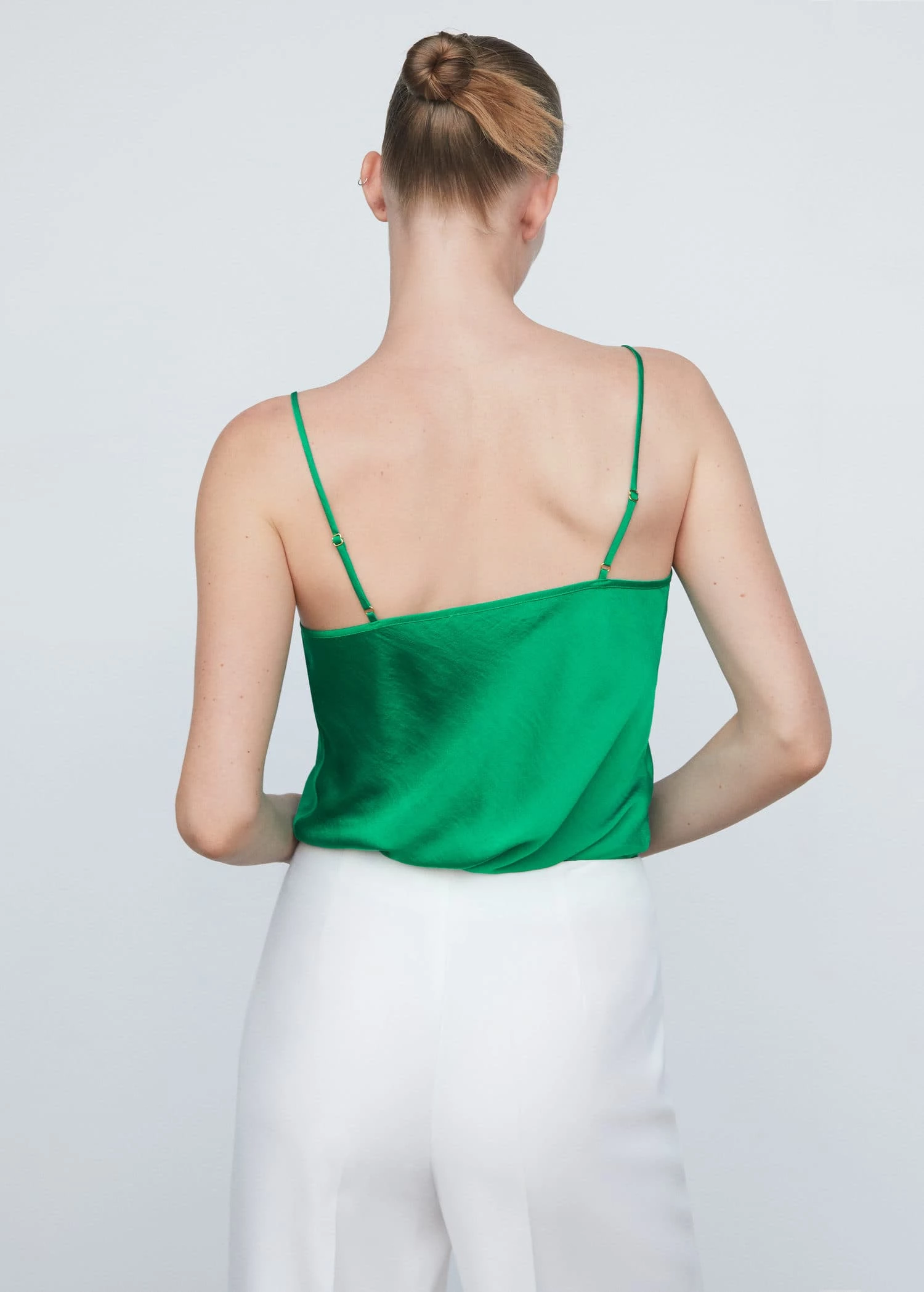 tissu satine, tissu fluide, coupe droite, col echancre, bretelles fines ajustables, sans fermeture, collection fetes et ceremoniesComposition: 100% polyester